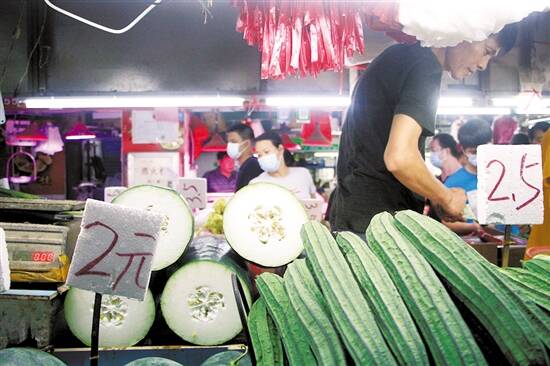天时暑热,冬瓜是肉菜市场里的销量担当