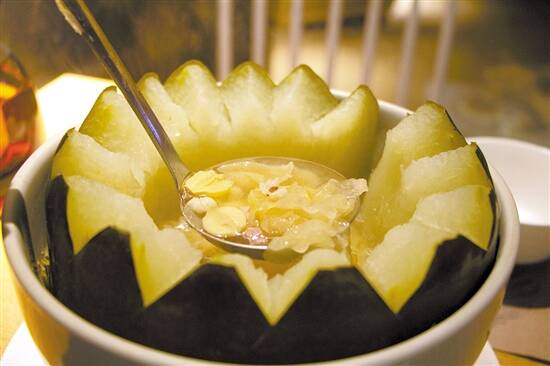 每逢大暑小暑,很多老广都会想起冬瓜盅这道名菜,广州不少餐厅在夏季都会推出自己的特色冬瓜盅。越华路珠江国际大厦的龙庭琇厨是不少美食家口中“专做心机菜”的精致餐馆,行政总厨邱金玉最近围绕冬瓜这个主题,推出了两款时令菜。