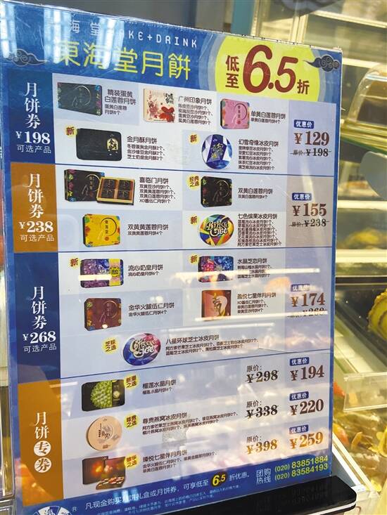 据悉,东海堂饼家在7月31日前有6.5折优惠,以抢购月饼礼券方式进行,现货礼盒上线后,市民可在其全线门店兑换。