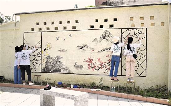 中大新华暑期“三下乡”社会实践队绘制山水画