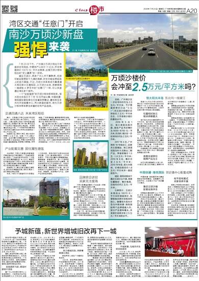 今年7月,恒大阳光半岛和中国铁建·海悦国际的相继亮相,将有望为万顷沙板块的一手楼市带来更高的关注度。