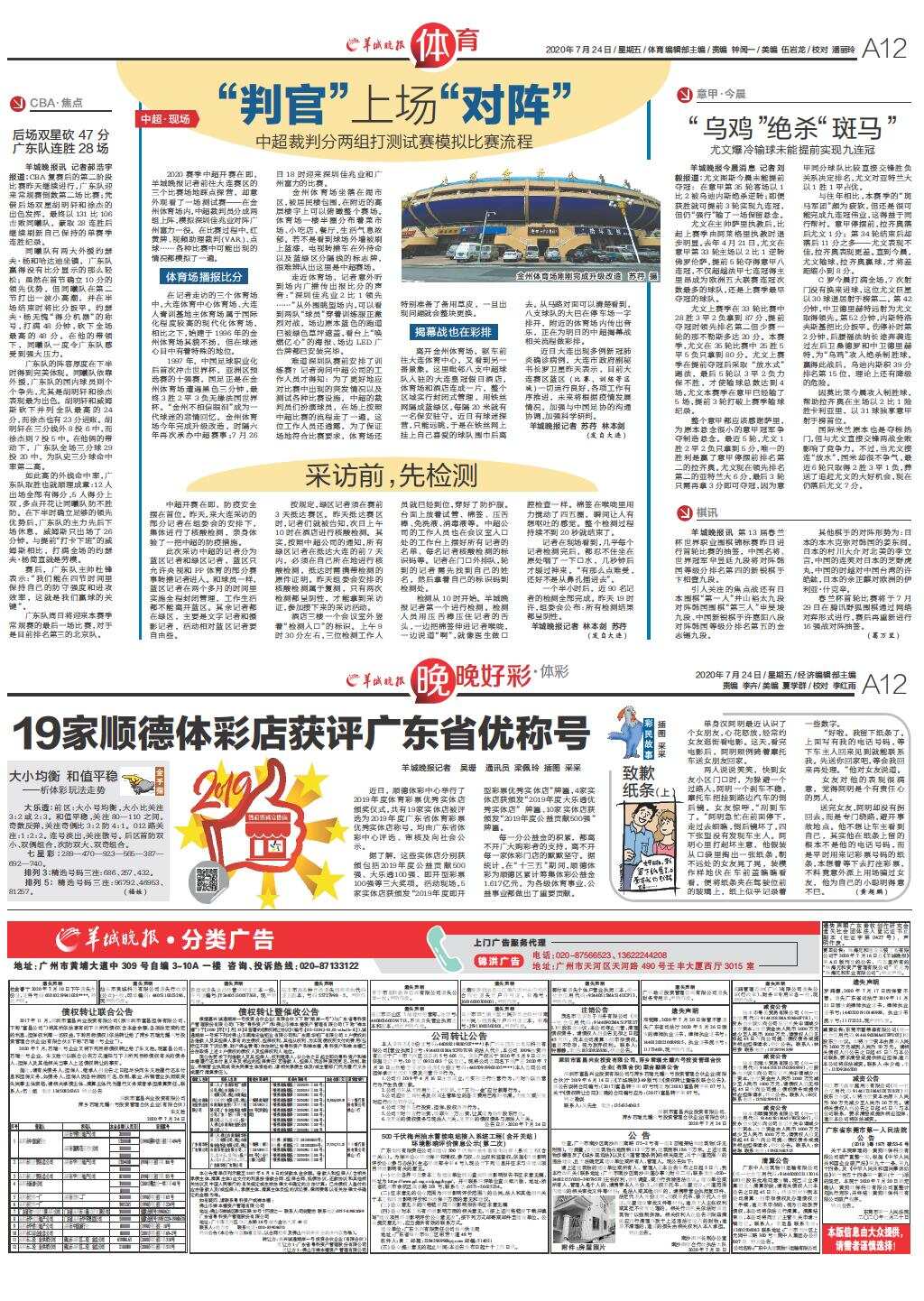 第A12G版:体育;晚晚好彩·体彩;广告