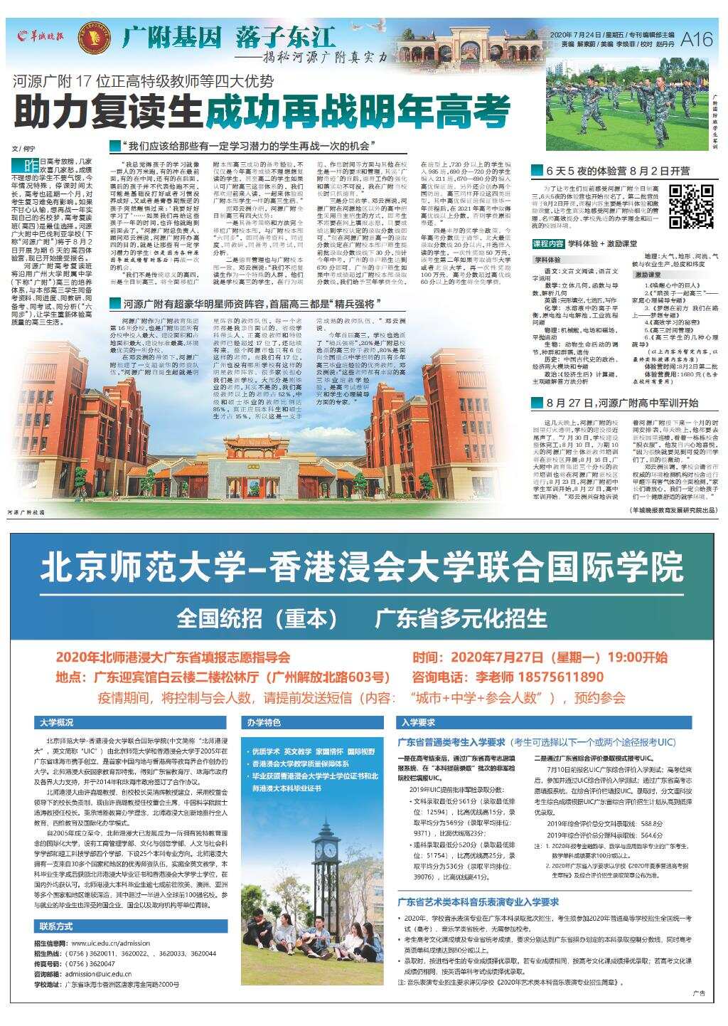 第A16版:广附基因 落子东江;广告