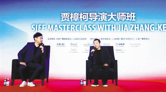 贾樟柯(右)在“电影学堂”上分享自己的感悟