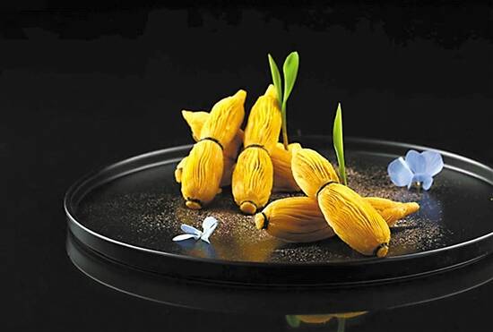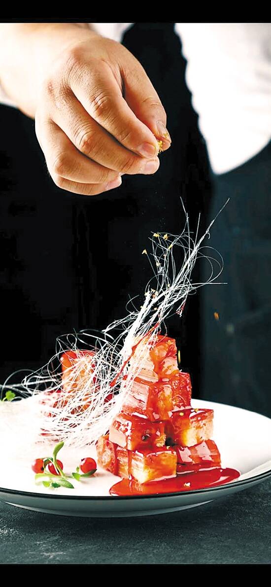 绿豆釀莲藕可能很多人都吃过,高端餐厅的做法有何不同?广州市越秀区越华路珠江国际大厦的龙庭琇厨的行政总厨邱金玉就想到在绿豆里放15年靓陈皮粒,加上精美的摆盘,吃进嘴里,相信每尝一块你都会感觉是精品。