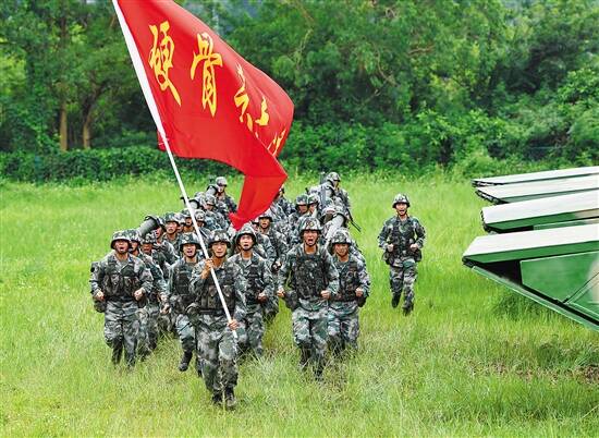 “硬骨头硬在哪,铁甲雄风守天下,军事过硬武艺精,沙场夺魁任摔打。”七月,烈日炎炎,海边传来一阵阵嘹亮的拉歌声。身穿迷彩服的士兵负重奔跑在丛林、山路、沙滩上,这是陆军第74集团军某旅六连集中训练。