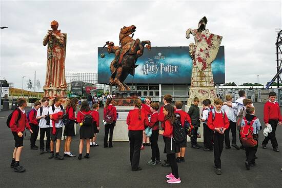 英国哈利·波特影城门口集结的学生们 羊城晚报记者 林桂炎 摄