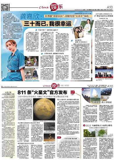 据了解,依托国家天文科学数据中心对外提供服务的天文学名词数据库,目前已收录包括火星常见地名在内的两万多条天文学名词。