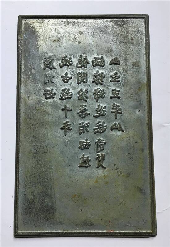 这是一块《广州好》锌片(铅活字印刷术的器物,长14厘米、宽8.5厘米),上面凸起的字,是广州市长朱光的亲笔手稿——《广州好》的第一首: