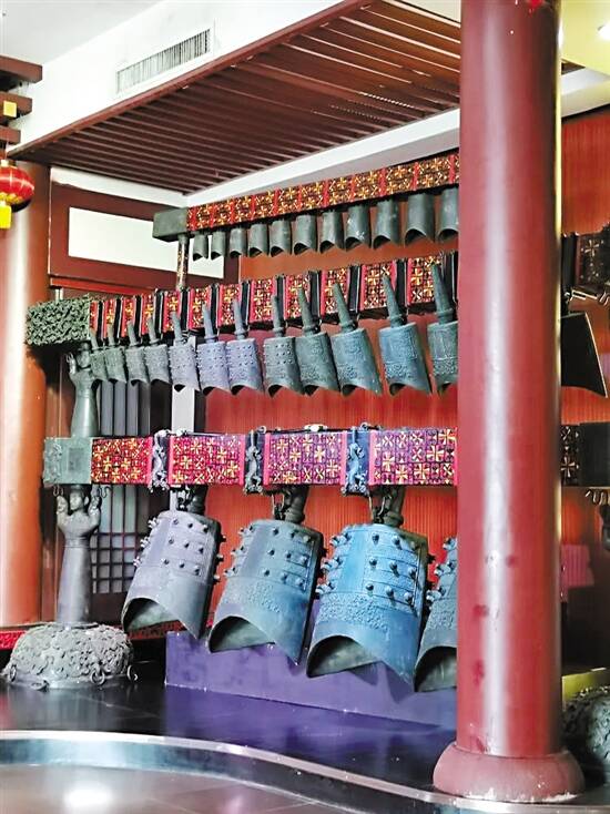 楼下表演场内有展出的编钟,也有编钟表演