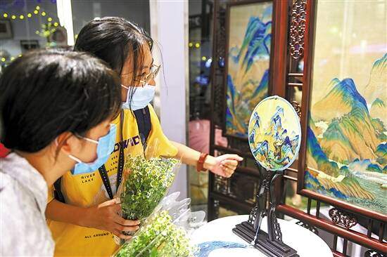 羊城晚报讯 记者黄宙辉、通讯员李婷婷报道:8月25日七夕之夜,广州非遗潮玩艺术新地标——潮墟C·PARTY热闹非凡。由广州广电传媒集团和广州美术学院联手举办的“广州美术学院非遗研培学员结业成果展”(以下简称“非遗研培成果展”)在当天启动,现场还有七夕·粤剧“街文化”展演、瑶族绣娘炫技、汉服同袍大巡游等各种节目轮番上演。其中,14米刺绣版《千里江山图》在“非遗研培成果展”发布仪式上亮相,令现场观众大开眼界。