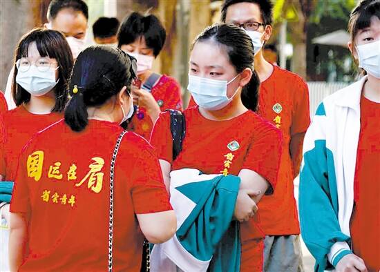 中考前,家长细细叮咛 羊城晚报记者 谢小婉 摄
