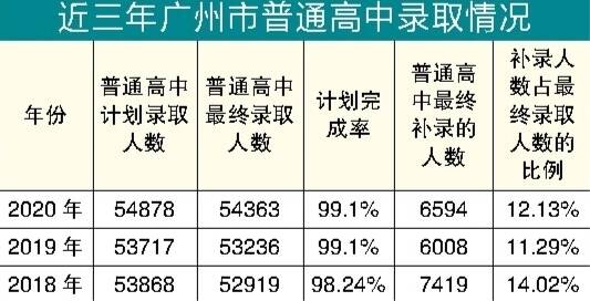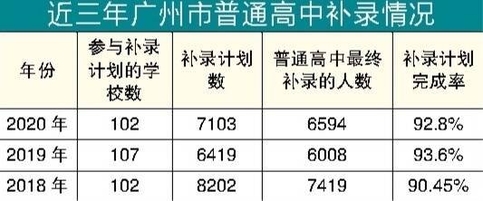 近三年来,广州市的普通高中补录计划完成率在92.3%左右,即有8%左右的补录学位没有录取到学生。