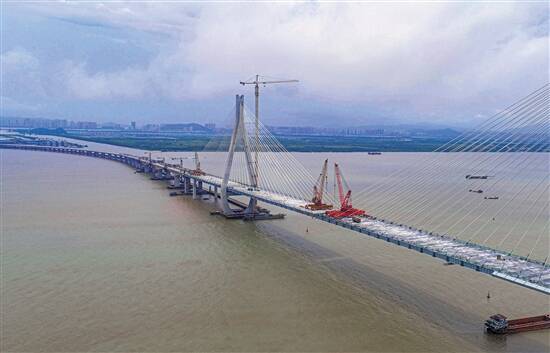 珠海农行全面参与全市重点项目建设,图为洪鹤大桥施工现场 孟庆虎 张政 摄