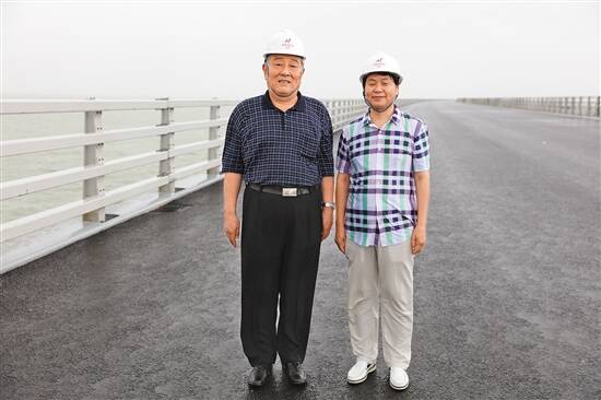 李需民(右一)陪同著名词作家晓光参观港珠澳大桥