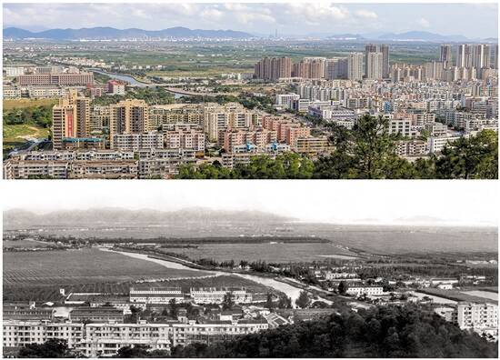 作为一名有心人,张金联还会时隔多年后在同一地点拍照,让城市变化有了更清晰的对比。张金联向羊城晚报记者展示了一组珠海平沙镇美平社区的对比照。上世纪80年代,美平社区还是一片农田,村道是羊肠小道,农房稀稀疏疏。但今年张金联所拍摄的美平社区,已经展现出一座现代小镇模样:宽敞的道路、高档的住宅楼,城市充满着生机。