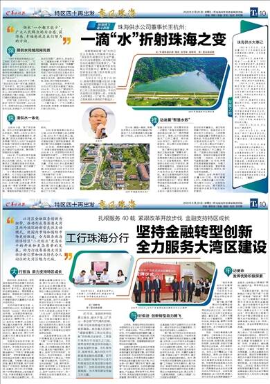 从事供水行业30多年来,王杭州一直在为提供优质用水的目标而不懈努力。通过他和同事们的努力,珠海在供水方面也有不小的变化:人流密集的公园里设置了免费的直饮水服务站,市民出游更方便了;供水服务实现水电气“三厅合一”,供水网上营业厅开通了,市民可以足不出户轻松办理供水业务;梅溪水厂开工建设,平岗-广昌原水供应保障工程快速推进,珠海供水基础设施更加完善……说到这,王杭州语气里都是自豪:“40年来,珠海的发展速度越来越快,与澳门的联系也愈发紧密,看到珠海与澳门市民喝好水,用好水,我也很有成就感。”