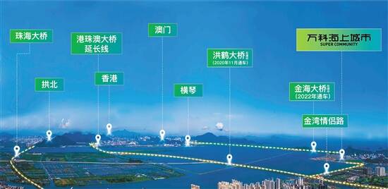 “万科湾区首座‘超级社区’——万科海上城市,以汇聚大湾区横琴、金湾的利好中央区、多维立体交通网络及每一寸不可复制的海岸线土地,打造的50万平方米超级人居海上大城,必将为珠海这座滨海城市带来与城市海岸资源自然融合的‘旅与居’全新美好生活方式,成为属于珠海人的‘一生之城’。”