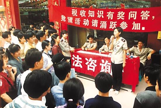 1998年4月,深圳税务部门工作人员向群众宣传税法