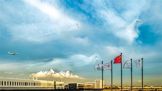 2、个人原创,作品紧扣社会主义核心价值观,以“蓝天白云新宝安”为主题,拍云直观体现宝安蓝,创意P云考验作者的对白云捕抓能力、想象能力与绘画能力;