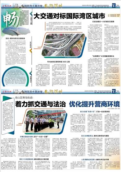 深圳海陆空铁四通八达交通网络已然成型:共建粤港澳大湾区国际性综合交通枢纽;深圳一小时城际交通圈启动建设;推进大湾区世界级机场群建设;港口集装箱货运吞吐量位列全球第四,邮轮旅客接待量居全国前四名。