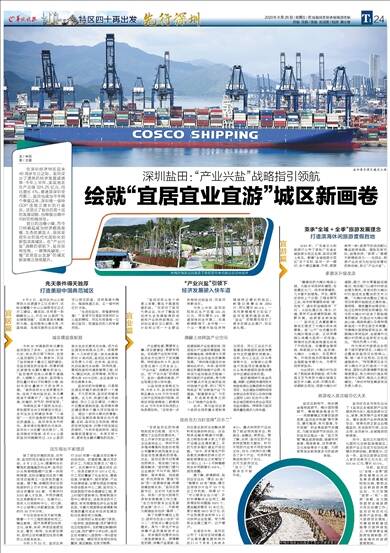 在深圳经济特区迎来40周岁生日之际,盐田交出了漂亮的经济发展成绩单:今年上半年,实现地区生产总值324.25亿元,同比增长4%,增速居深圳全市第二,盐田也成为今年两个季度以来,深圳唯一保持GDP连续正增长的行政区。这显示了盐田后劲十足的发展动能,也释放出稳中向好的积极信号。