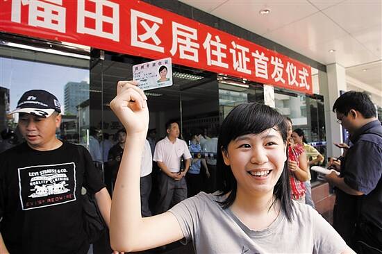 福田区居住证首发仪式现场,来自揭阳的李女士拿到期盼已久的居住证