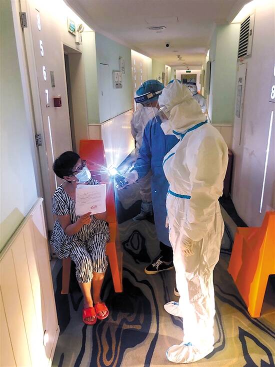 健康驿站中,工作人员正在进行采样