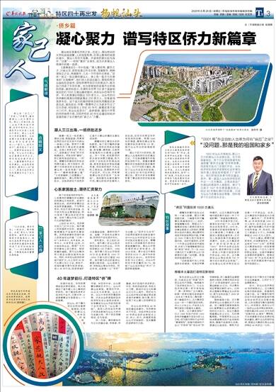 在汕头经济特区40年间的建设浪潮中,华侨群体功不可没。当经济特区站在40年再出发的全新起点上时,侨心、侨力、侨魂更将是汕头不可或缺的、至关重要的逐梦前行之桨。