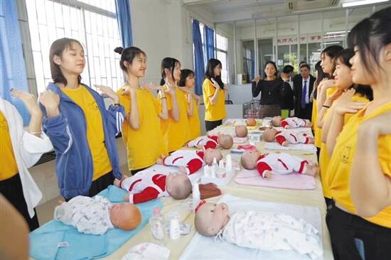 从业人员正在进行婴儿护理培训