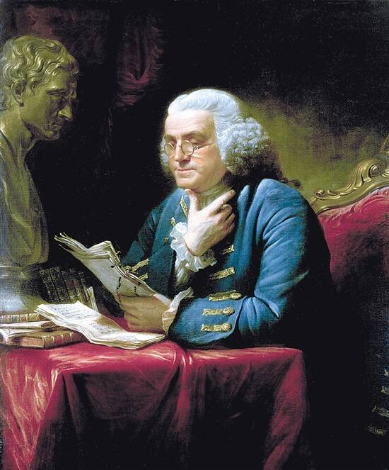 双光眼镜发明人本杰明·富兰克林(美国画家戴维·马丁绘于1767年)