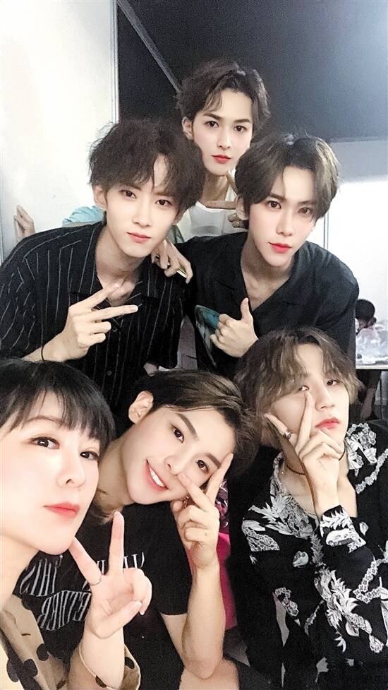 龙丹妮(右二)在《明日之子3》中出任“星推官”