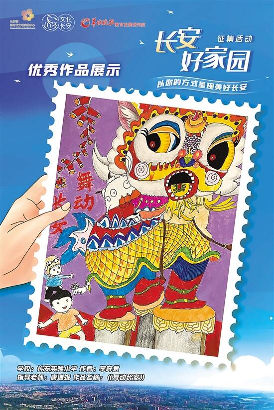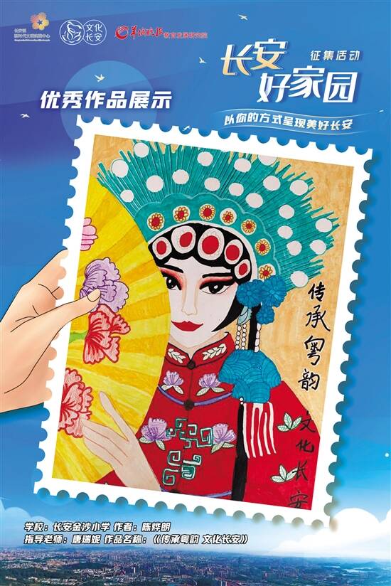 长安镇是龙狮之乡、粤剧之乡,长安中心小学李梓君和长安金沙小学陈烨朗分别创作绘画作品《舞动长安》和《传承粤韵》,来颂扬文化长安。长安实验中学的郭颖聪和傅晓烨等同学,则通过录制短视频,来表达对长安家园的祝福。