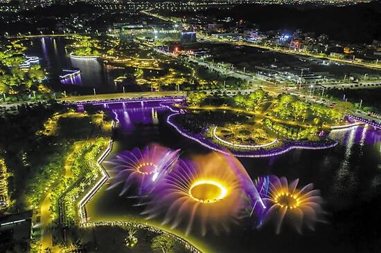 而在蓬江区的园山湖公园,则成为了“网红”晚上拍照留念的最佳“打卡点”。据介绍,园山湖公园位于保利中心附近,是滨江新区景观的重要组成部分,也是滨江新区水利建设的成果之一 。园中芳草遍地,绿树成荫,各种蜿蜒优雅的小径,移步换景,让人心旷神怡,给人一种到了水乡的感觉。园内沿湖水岸有广阔亲水平台,可漫步湖岸,乘凉风、赏湖景。到了晚上,天空远处星光点点,园内灯光闪闪,还有如梦如幻的音乐喷泉,夜景非常“养眼”。市民黄姨参观园山湖公园后“点赞”道:“我很喜欢水,看到水就很开心,所以很喜欢这里的‘亲水平台’,与大自然很亲近。”