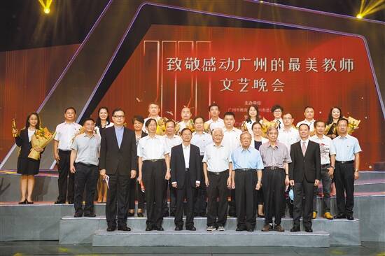 在9月6日的致敬“感动广州的最美教师”文艺晚会上,“最美教师”与嘉宾合影 羊城晚报记者 梁喻 摄