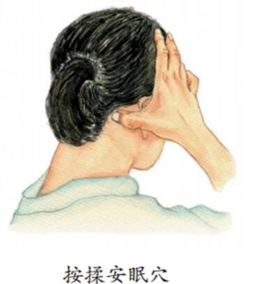 1.揉按安眠穴、足三里穴、太冲穴、内关穴:将双手拇指指腹放置于安眠穴上,力度要适中,每个穴位按揉150~200次,每日1次。