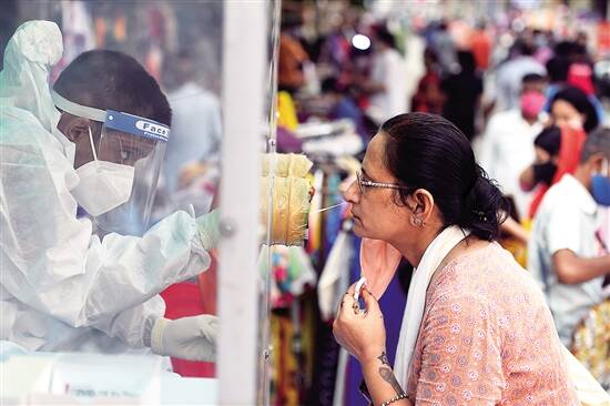 16日,新德里民众接受新冠病毒检测 图/人民视觉