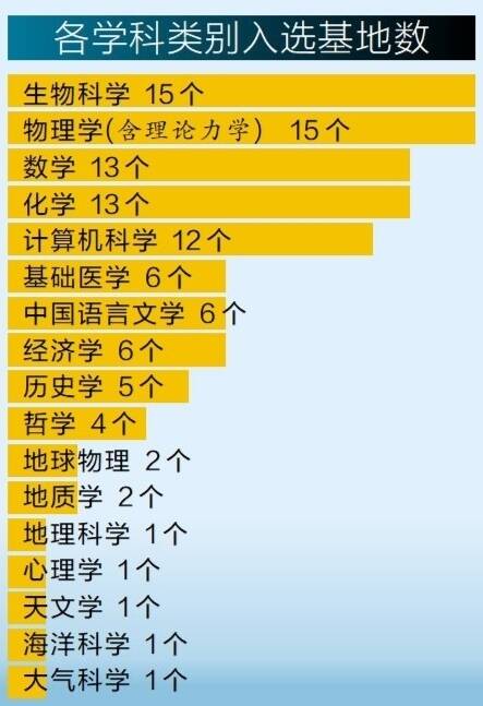 记者了解到,本次入选的基地均位于“双一流”建设高校内。除了“一流大学”建设高校外,中国科学院大学、华中农业大学、南京信息工程大学、上海财经大学、西南财经大学、中国地质大学(武汉)、中央财经大学7所高校作为“一流学科”建设高校均有基地入选。