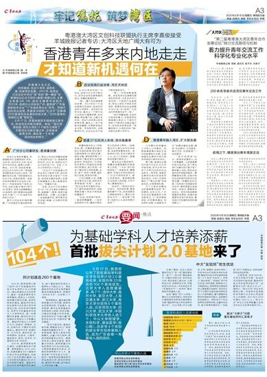 9月17日,教育部公布了首批基础学科拔尖学生培养计划2.0基地名单,全国共有33所高校104个基地获批。北京大学入选数量最多,有7个;清华大学、南开大学、复旦大学、上海交通大学、浙江大学、南京大学分别有6个基地入选;北京师范大学、四川大学、武汉大学、中国科学技术大学各入选5个。中山大学物理学、生物科学、基础医学(陈心陶)、历史学4个类别的拔尖学生培养基地入选,成为广东省唯一有基地入选的高校。