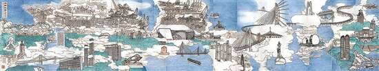 《南国的风——深圳、珠海、汕头、厦门经济特区》(中国画) 尺寸:1600cm(宽)×300cm(高) 创作人员: 广东画院:林蓝、李东伟、黄国武、黄唯理、周正良、陈映欣、 陈迹、杜宁、关坚 特邀艺术家:司徒乃钟(香港)、黎鹰(澳门)、林天行(香港)、李得之(澳门)、陈湘波(深圳)、古锦其(珠海)、许自敬(汕头)、林涛(厦门)、刘明(广州)、杨星(汕头)、林淼(深圳)、罗小颜(广州)、陈煜璧(汕头)