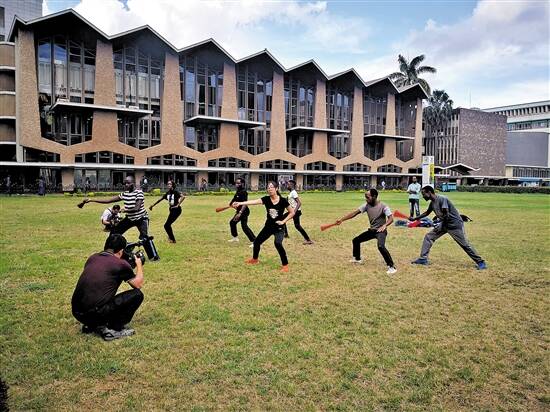 肯尼亚内罗毕大学孔子学院里,学生们在学习中国武术