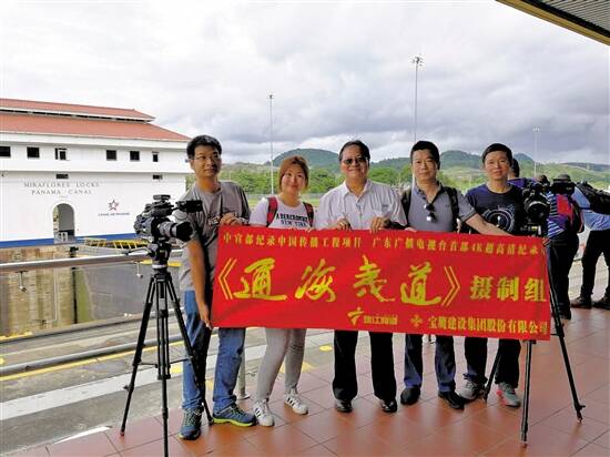 巴拿马运河华裔工程师黄华昌与摄制组合影