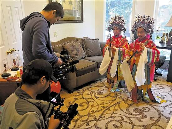 美国三藩市,一对中美混血双胞胎正在学习京剧