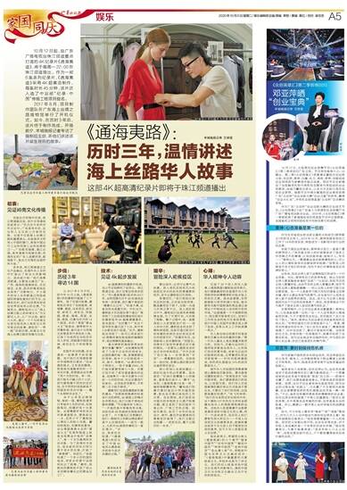 10月12日起,由广东广播电视台珠江频道重点打造的4K纪录片《通海夷道》,将于每周一22:00在珠江频道播出。作为一部6集系列纪录片,《通海夷道》采用4K超高清制作,每集时长45分钟,该片还入选了中宣部“纪录·中国”传播工程项目提名。