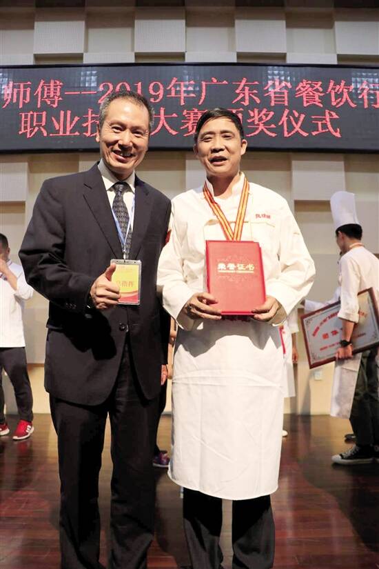 国家级烹调技师、五华餐饮协会负责人李庆泉(右)