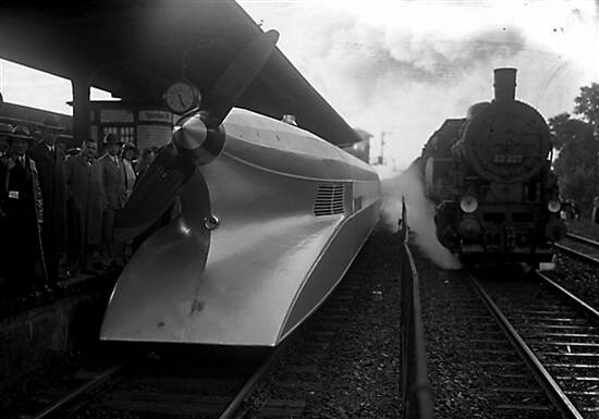 1931年6月21日,“铁路齐柏林”在柏林至汉堡的铁路上跑出了每小时230.2公里的速度,这一速度直到1954年才被打破,但至今仍是螺旋桨推进陆路交通工具的最高速度。