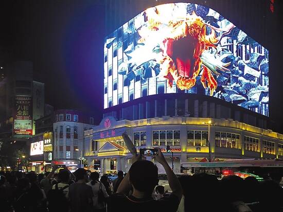 新大新百货北京路店外墙的裸眼3D屏,国庆期间成为广州的新晋网红打卡点