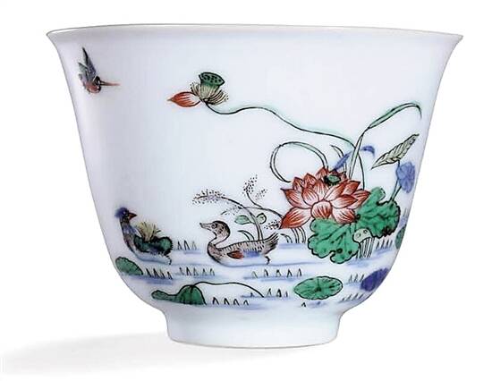 清康熙 五彩六月“荷花”花神杯