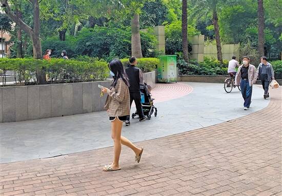 22日8时许,天河一小区内,穿秋装的和夏装的都有 梁怿韬 摄