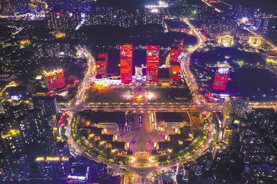位于城市核心区的江门市五邑华侨广场及万达广场 周华东 摄